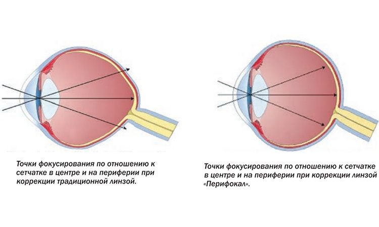 Самым распространенным способом коррекции близорукости всегда являлись очки. Проблема заключалась лишь в том, что обычные очки помогали лучше видеть, но не сдерживали развитие болезни — и вот почему. Очки с традиционными линзами фокусируют картинку только в центральной зоне сетчатки, а вот на окружающие ее зоны изображение попадает в расфокусированном виде. Эта периферийная расфокусировка и приводила к развитию близорукости, поскольку в природе идеально видящий глаз одинаково четко воспринимает картинку и в центре, и на периферии. Именно этот принцип воплотили в себе линзы «Перифокал». Они учитывают особенности периферического преломления близорукого глаза и тем самым создают условия для стабилизации близорукости.